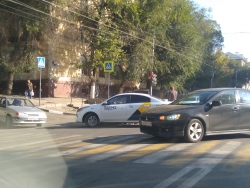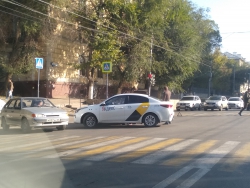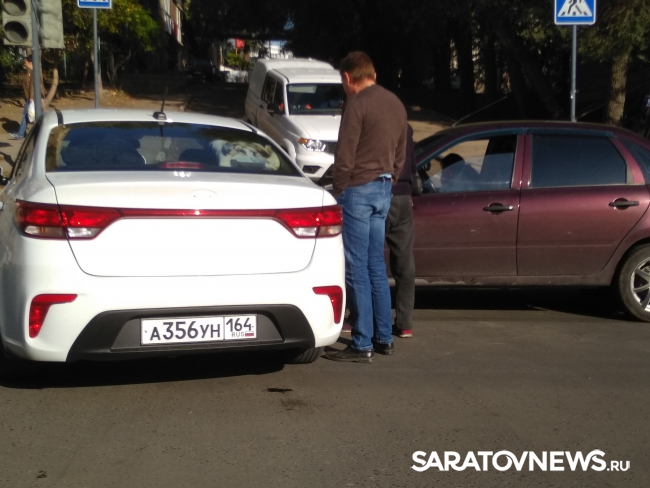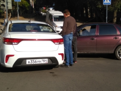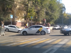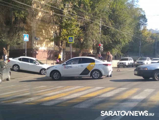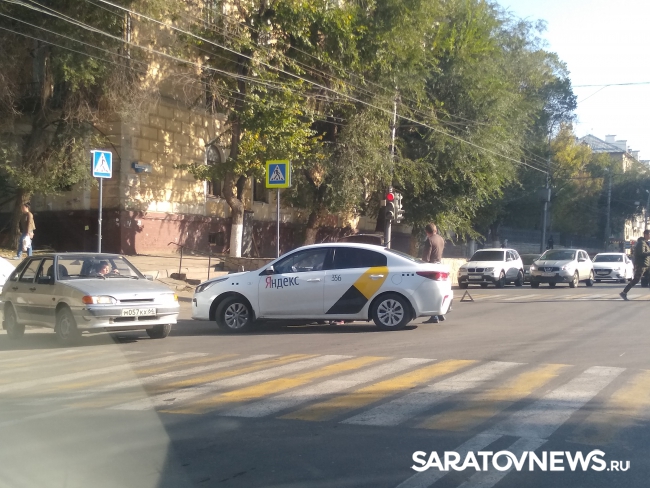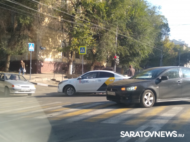 Несколько минут назад в Саратове, на перекрестке Большой Садовой и улицы Чернышевского столкнулись "Лада Приора" и "Киа" в корпоративных цветах "Яндекс. Такси" с бортовым номером 356 и таким же номерным знаком. Об аварии с места происшествия сообщил корреспондент SaratovNews.