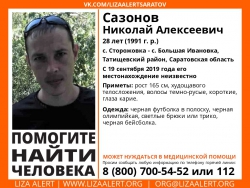 В Татищевском районе Саратовской области ищут 28-летнего Николая Сазонова, сообщают волонтеры поискового отряда «Лиза Алерт».