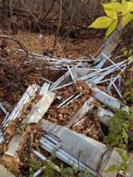 По дороге к санаторию «Синяя птица» в лесу были найдены свалки с лампами дневного света. Эти лампы ртутьсодержащие и относятся классу опасных бытовых отходов. Кто вывал их в лесу в большом количестве остается неизвестным.