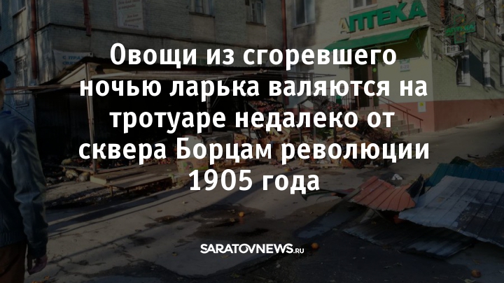 В эти минуты на перекрестке улиц Симбирцева и Новоузенской прямо на тротуаре валяется товар из овощного павильона, в котором произошел пожар. Фото в редакцию SaratovNews прислала местная жительница.