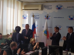 Ирину Романову поздравили с избранием и вручили ей букет цветов.