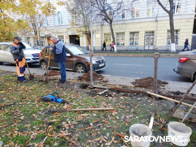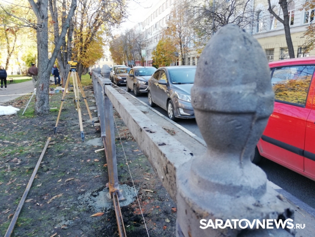Корреспондент ИА SaratovNews убедился в правдивости слов главы Саратова. Рабочие начали ее монтаж. Как рассказали в пресс-службе администрации города, перед установкой ограду обработали пескоструйным аппаратом.