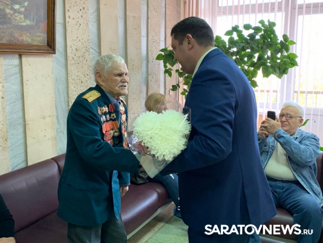 Сегодня депутат Саратовской областной думы, главный врач госпиталя для ветеранов войн Евгений Ковалев поздравил с днем рождения долгожителя, инвалида Великой Отечественной войны, героя-танкиста Алексея Ленкова и вручил ему памятные подарки. Ветерану исполнилось 104 года!