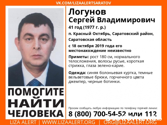 В Саратовском районе без вести пропал 41-летний Сергей Логунов. Об исчезновении человека сообщили волонтеры поискового отряда «Лиза Алерт Саратов».