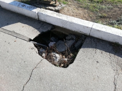 Один провал находится прямо напротив лестницы, ведущей к Волге от речного вокзала, второй — на верхнем ярусе возле площадки для игры в пляжный волейбол. Провалы довольно большие и вполне могут стать причиной несчастного случая. Судя по их внешнему виду, асфальт провалился уже несколько дней назад. Провалы ничем не огорожены.