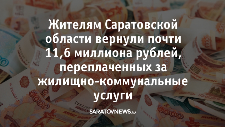 Жителям Саратовской области за январь-сентябрь 2019 года вернули больше 11,59 миллиона рублей переплаты за жилищно-коммунальные услуги. Об этом вчера на постоянно действующем совещании в областном правительстве рассказал начальник жилищной инспекции Сергей Вербин.