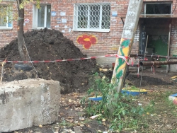 «Яма с повреждёнными коммуникациями стоит с прошлой недели, вокруг школы разбросаны груды мусора, на прилегающей к школе территории нет уличного освещения, подходы и подъезды к школе находятся в ужасном состоянии, на дорогах выбоины», — пишет покровчанин.