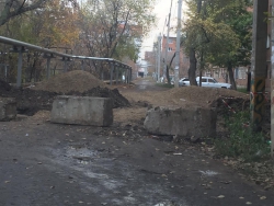 Мужчина пишет, что здесь начали ремонт водопровода. Из-за этого занятия в школе были приостановлены. Однако коммунальщики вскорости прекратили работу, технику увезли, оставив ямы незакопанными.
