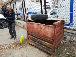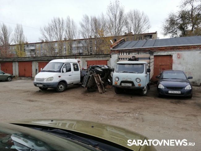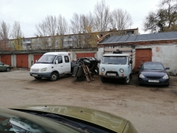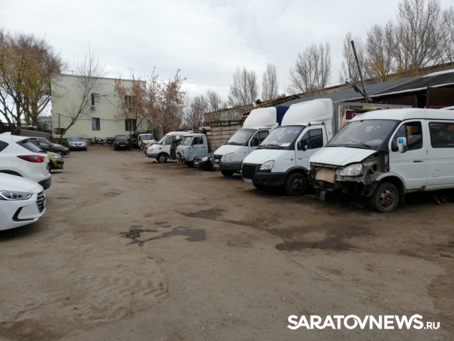 Здесь на территории автостоянки располагается еще и СТО, поэтому кроме нормальных автомобилей, на самой парковке и вокруг нее расставлены остовы старых машин, вероятно используемые ремонтниками, как доноры запчастей. Впрочем, сам владелец СТО, отрицает, что занимается ремонтом авто. В разговоре с начальником управления муниципального контроля Андреем Марусовым он утверждал, что просто арендует гараж для того, чтобы ставить на ночь свой личный автомобиль. Его замасленный комбинезон и руки, а также слитый под дверь отработка из двигателей, правда, говорили об обратном.