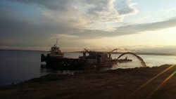 В Саратове продолжается реконструкция набережной Космонавтов. В районе Большой Садовой замснаряд ведет намыв песка, сообщает корреспондент ИА SaratovNews.