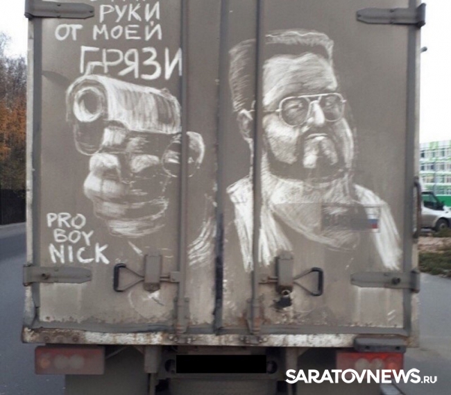 Вчера вечером в сообществе «Регион-64 Саратов» аноним опубликовал фотографию отличного рисунка на пыли с подписью: «Такой талант пропадает»..