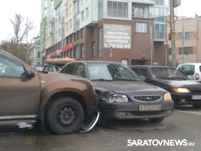 В Саратове образовалась пробка из-за столкновения двух автомобилей, сообщает корреспондент ИА SaratovNews.