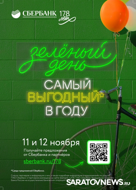 8 ноября Россия — Сбербанк отметит свой 178-й день рождения, проведя «Зелёный день» — самый выгодный день в году. Всем жителям России будут доступны лучшие продукты банка и компаний его экосистемы по самым выгодным условиям и с большими скидками. Впервые в «Зелёном дне» масштабно представлены компании экосистемы Сбербанка: Okko, Беру, «Ситимобил», Delivery Club, DocDoc, «Сбербанк Лизинг», «Сбербанк Факторинг», «Деловая среда», «Яндекс.Деньги», «Эвотор», «Сбербанк АСТ» и другие. Также участие в акции принимает более 150 компаний из разных областей торговли и сферы услуг.