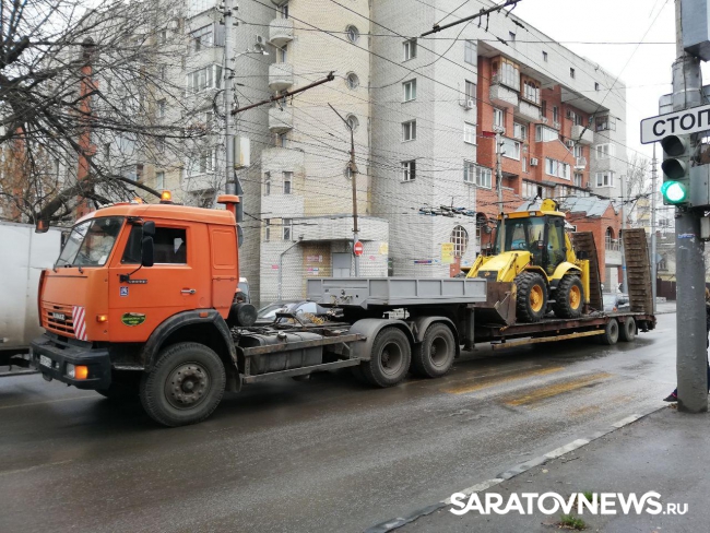 Около часа назад КамАЗ, перевозивший трактор, оборвал троллейбусные провода на улице Чернышевского в Саратове. Об этом ИА SaratovNews сообщили очевидцы.