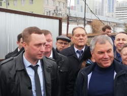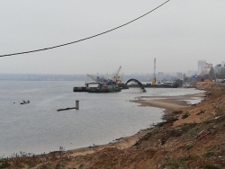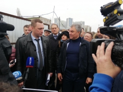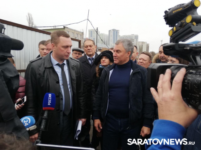Председатель Государственной думы Вячеслав Володин посмотрел на ход строительства пляжа в Саратове. Подрядчик строительства, директор ООО «Тандем-проект» рассказал, что работы немного отстают от графика, но пообещал нагнать это отставание.