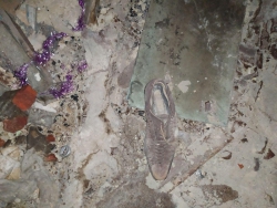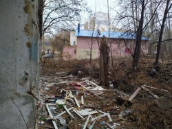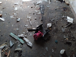 В расселенном аварийном доме на Перспективной, 10б до сих пор можно найти остатки жизни людей. Елочные игрушки, мишура, ботинки, раковина и разломанные шкафы — это всё чередуется с грузами строительного мусора, разбитыми бутылками и самодельными приспособлениями для курения наркотических сухих смесей. Рядом с заброшкой — два детских сада и 49-я школа. Мимо здания родители водят детей в учебные заведения, а ребята постарше уже ходят сами, срезая дорогу до дома.