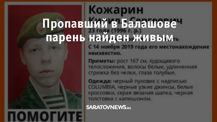 Напомним, что парень, недавно отслуживший в армии, исчез 14 ноября в Балашове.