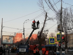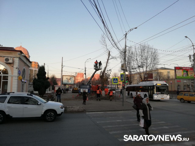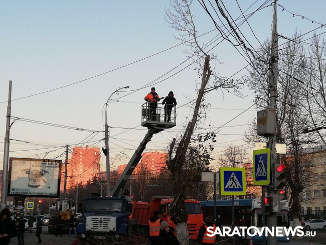 Работники «Дорстроя» сегодня с утра пилят деревья на перекрестке Московской и Астраханской. Об этом сообщает корреспондент ИА SaratovNews.