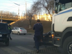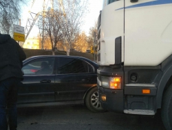 Около дома № 28 на улице Шехурдина МАЗ «притерся» к иномарке. Напомним, что это уже вторая за час авария в этом районе. Чуть ранее под мостом на 3-й Дачной столкнулись две «Лады». Как и в случае с легковушками, МАЗ и его «жертва» пострадали несильно, но создали огромную пробку. Проехать в сторону Ленинского стало еще труднее.