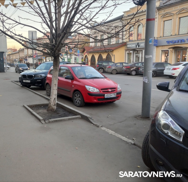Жители Саратова обратили внимание на неправильно припаркованные машины в центральном районе. Фото нарушителей появилось сегодня в одном из городских пабликов в социальной сети.