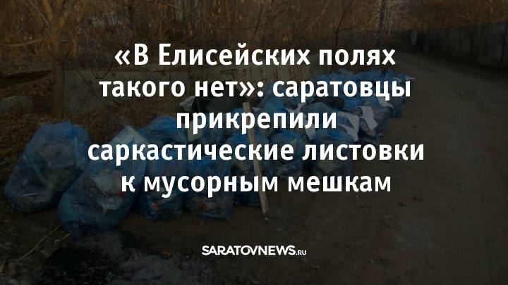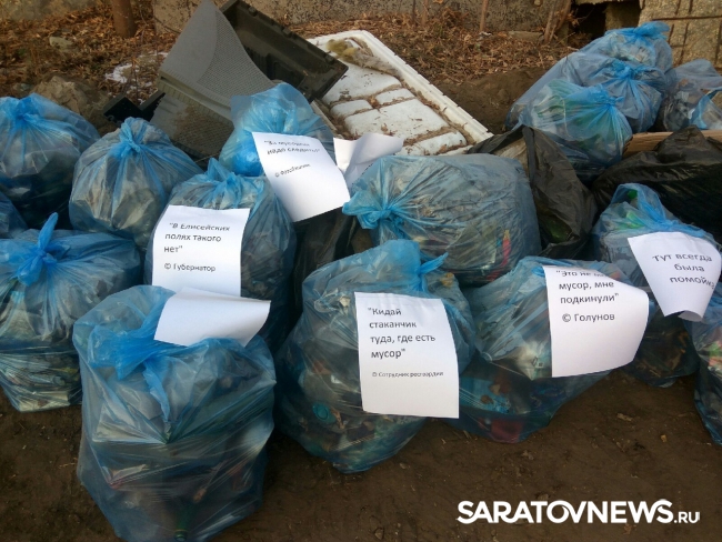 Не дождавшись вывоза мусора, саратовцы сами вышли на субботник и убрали часть отходов. К пакетам прикрепили саркастические листовки. «В Елисейских полях такого нет», «Кидай стаканчик туда, где есть мусор», «Это не мой мусор, не подкинули», «Убрали бы молча» – так жители Кировского подписали мешки.
