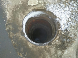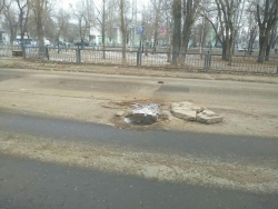 Опасный открытый люк находится на проспекте 50 лет Октября на дублирующей дороге. Он расположен в районе пересечения с улицей Технической. На фото видно, что рядом с открытым люком брошены куски бетонной плиты, которые, очевидно, должны служить предупреждением для водителей, но вместе с тем мешают движению. Сам люк глубокий. Попав туда колесом, можно серьезно повредить машину, а про пешеходов и говорить не приходится.