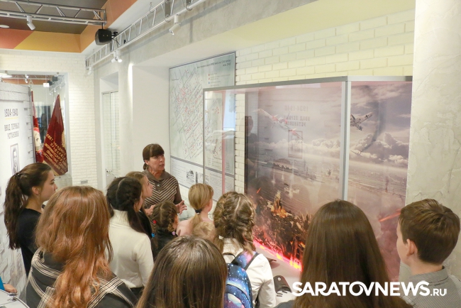 Героической страницей в истории завода стали годы Великой Отечественной войны, о которых ребята узнали, посетив Комнату Трудовой и Боевой Славы предприятия. Подростки ознакомились с новой экспозицией заводского музея, посмотрели фильм о заводе, узнали о вкладе Саратовского НПЗ в победу в Великой Отечественной войне. Ребятам рассказали о Героях Советского Союза Александре Некрасове, Валерии Хомяковой и работниках предприятия, которые на полях сражений отстояли честь и независимость нашей Родины, чьи имена запечатлены на мраморных плитах у заводского Мемориала героям фронта и тыла.