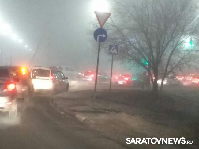 Как и обещали синоптики, сегодня в Саратове сильный туман. Водителям нужно быть осторожнее. Об это сообщают городские автомобилисты.
