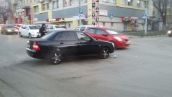 Две машины столкнулись на перекрестке Чапаева и Ульяновской. Mazda следовала по главной, а "Лада" врезалась в нее справа. В результате на боку Mazda осталась глубокая царапина, а второй автомобиль лишился номерного знака. На месте ДТП образовалась большая пробка. Ситуацию усулюбляет то, что Чапаева загружена общественным транпрортом.