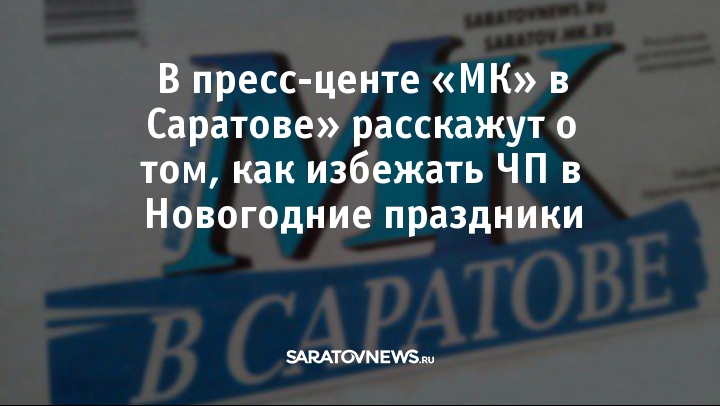 25 декабря в 12.00 в пресс-центре «МК» в Саратове состоится мероприятие — заседание круглого стола на тему: «Подготовка к Новогодним праздникам: наиболее частные ЧП и как их избежать».
