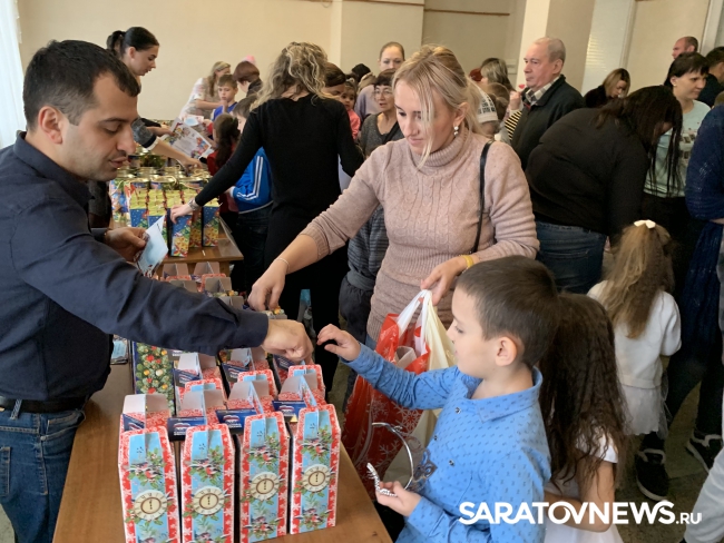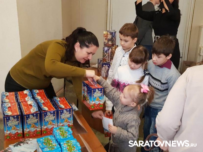 В конце мероприятия каждый юный участник новогоднего праздника получил сладкий подарок от организаторов мероприятия: секретаря местного отделения Партии «Единая Россия» Ленинского района Евгения Ковалева, главы районной администрации Лады Мокроусовой, депутатов Саратовской областной Думы - Николая Бушуева, Леонида Писного, Ирфана Аблязова, депутатов Саратовской городской Думы – Вячеслава Тарасова, Натальи Груколенко, Александры Сызранцевой, Александра Бондаренко, Артема Чеботарева, Сергея Улегина, Олега Мастрюкова и Светланы Глуховой, а также представителя первичного отделения Партии «Единая Россия» Ленинского района Сергея Царева.