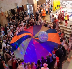 Сказочное представление началось в фойе, где малышей и их родителей встречали волшебные персонажи и главные новогодние герои – Дед Мороз и Снегурочка. Маленькие жители района с радостью танцевали, водили хороводы вокруг елочки, отгадывали загадки и участвовали в веселых новогодних соревнованиях. Продолжился праздник в зрительном зале, где гостям было показано первое в этом году театрализованное представление, посвященное символу наступающего 2020 года – «Всех сильнее». Это захватывающая история о приключениях Белой Мышки и ее друзей, дружбе, доброте и удивительном спасении Принца Мышонка из плена кота Крысофильда.