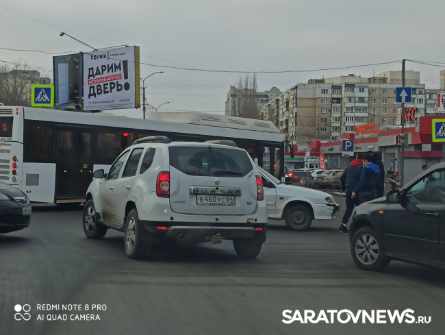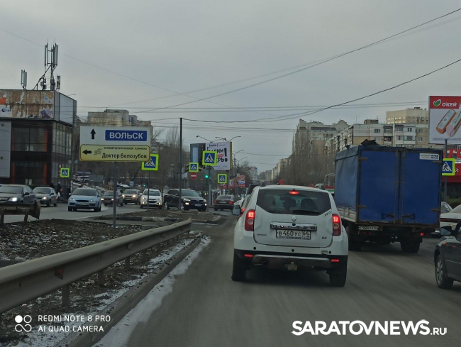 Около 15 минут назад в Солнечном-2 в Саратове произошло ДТП, вызвавшее большую пробку на дороге.