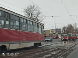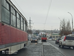 По имеющейся информации, трамваи встали на улице Танкистов. На фотографиях видны несколько составов маршрута № 11. По предварительными данным, причиной перебоев с работой электротранспорта стало ДТП на путях.