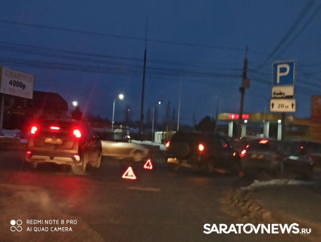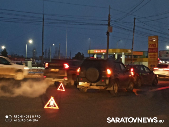 Сегодня около 8:30 на выезде из Саратова в Ленинском районе произошло ДТП. На месте аварии образовалась пробка.