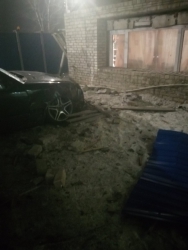 На фотографиях запечатлен черный Mercedec Benz с саратовскими номерами р275ев. Машина снесла остановку, забор и чуть было не врезалась в дом.