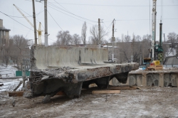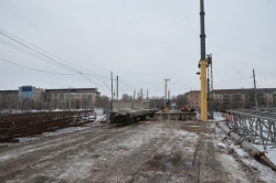 На данный момент демонтированы две из 11 балок над железнодорожными путями. Параллельно проходит заливка фундамента под опоры - уже треть готова. Проложены практически все необходимые коммуникации.