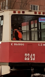 Сегодня в сообществе «Саратов онлайн» анонимный пользователь опубликовал фотографии с курящим в трамвае №10 кондуктором.
