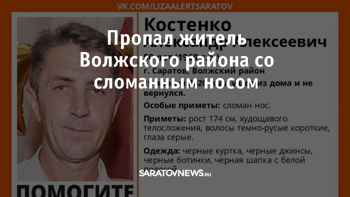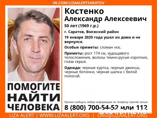 Сегодня волонтеры саратовского отделения поискового отряда «Лиза Алерт» разместили в своем сообществе информацию о пропавшем мужчине.