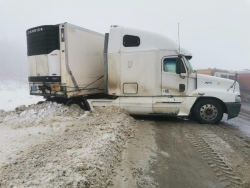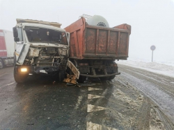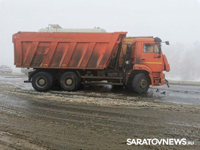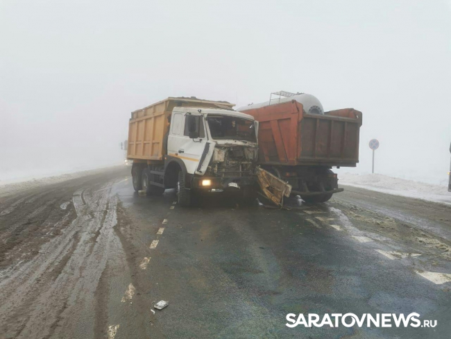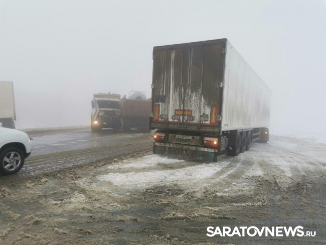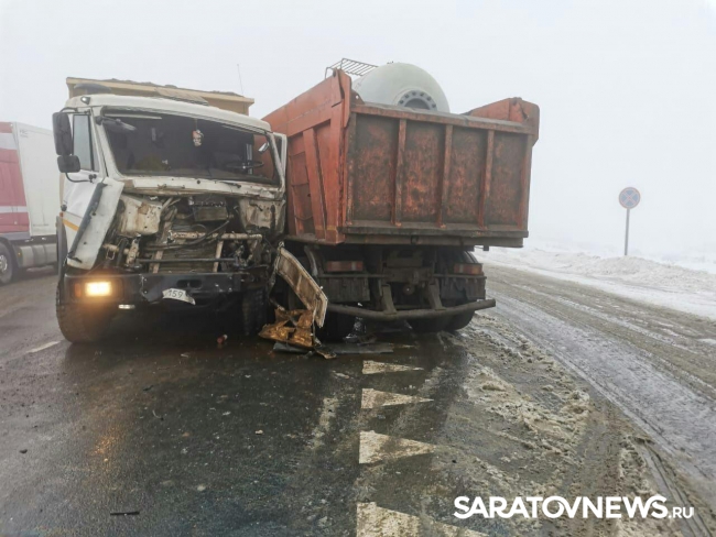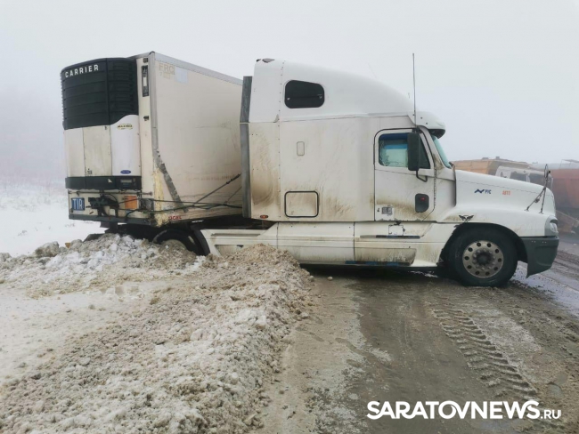 По предварительным данным, 48-летний водитель грузовика Volvo FH-TRUCK в составе полуприцепа, при осуществлении разворота не уступил преимущество в движении КаМАЗу. Отечественный грузовик в тот момент буксировал на жесткой сцепке автомобиль МАЗ, под управлением 46-летнего водителя. От удара тот врезался в полуприцеп FREIGHTLINER, который вел 58-летний мужчина. В результате ДТП 46-летний водитель доставлен в больницу. Обстоятельства выясняются. Информация поступила от пресс-службы ГУ ГИБДД по Саратовской области.