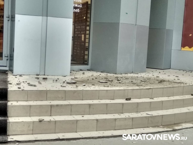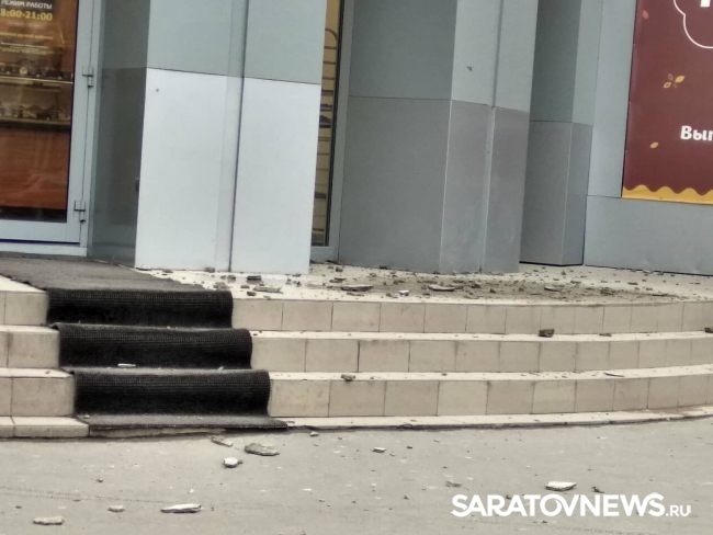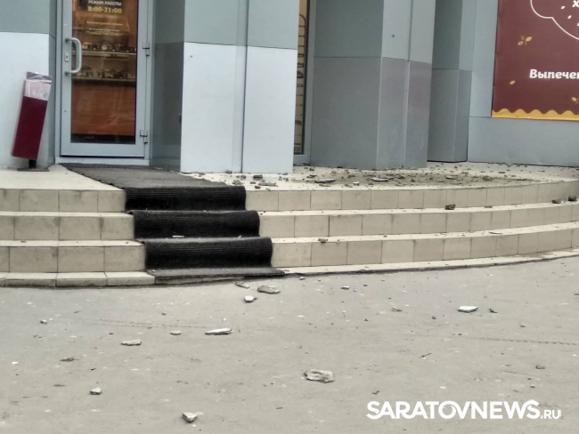 Только что в Саратове на пересечении улиц Горького и Советской произошло частичное обрушение балкона. На снимках, которые предоставили читатели SaratovNews, видно, что куски бетона и штукатурки осыпались прямо над входом в магазин «Хлебница».