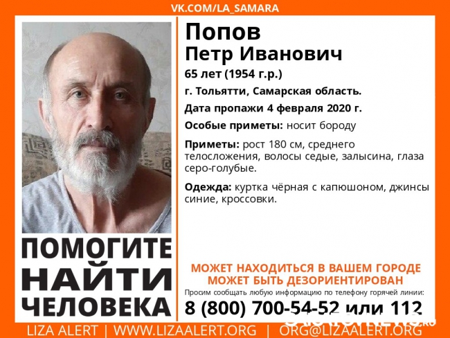 Сегодня в сообществе саратовского отделения поискового отряда «Лиза Алерт» опубликовали сообщение о пропаже жителя Тольятти Самарской области. Поисковики предполагают, что 65-летний Петр Попов может находиться в Саратовской области.