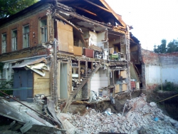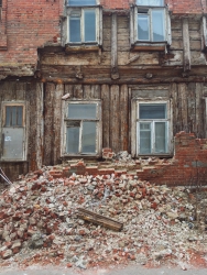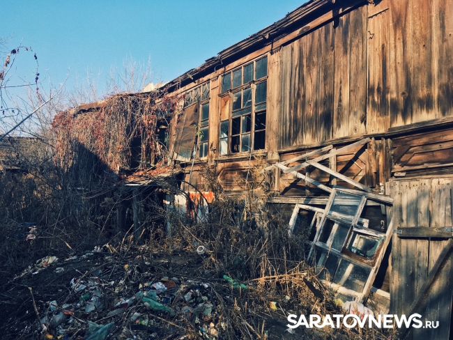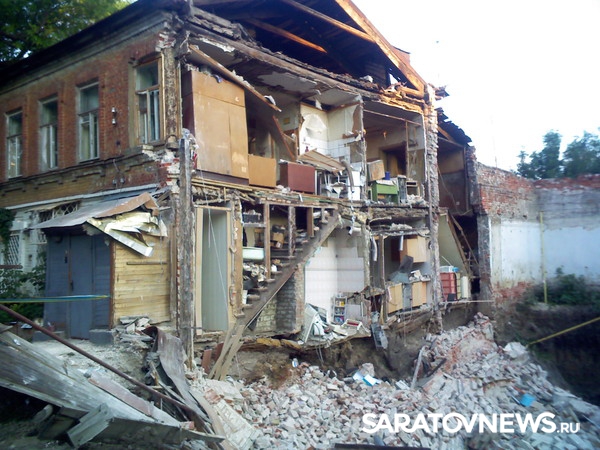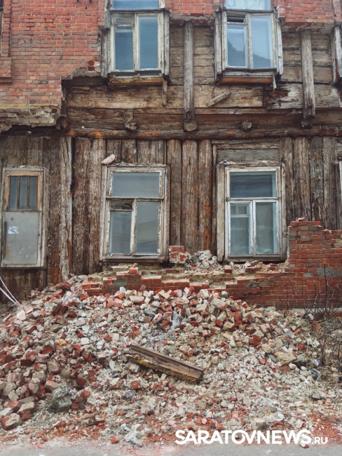 На снимках легко узнаются известные всем саратовцам старые домики. Стены некоторых домов обваливаются или уже обвалились. Стены других поддерживают балки.