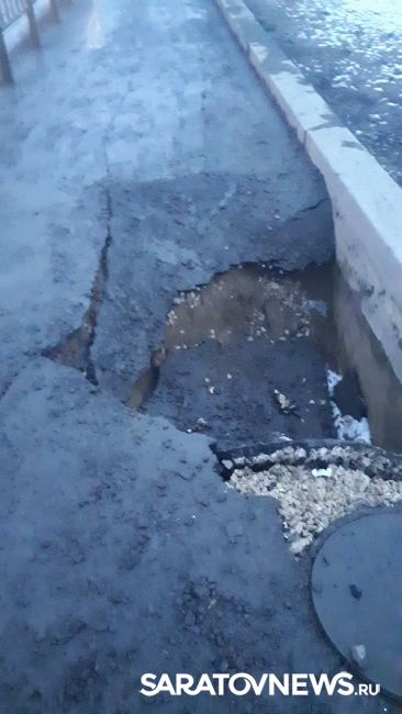 Сегодня в сообществе «Саратов онлайн» пользователь Данил Зенин опубликовал фотографии обнаруженной им в саратовском поселке Затон ямы в асфальте.