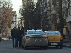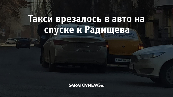 Только что в Саратове на пересечении улиц Рабочей и Горького столкнулись две легковушки. Одна из машин - такси.