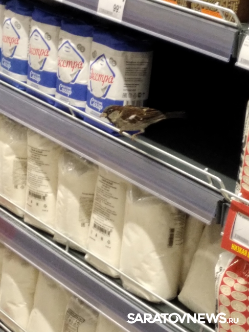 В редакцию Saratovnews читательница прислала фотографии воробьев, замеченных в «Перекрестке» в саратовском ТЦ «Победа Плаза».
