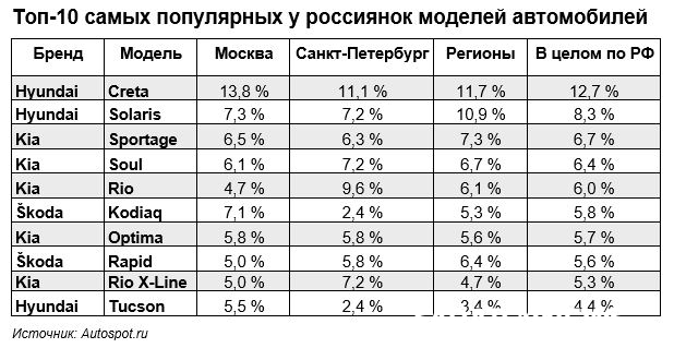Всего на женщин приходится около 20 процентов сделок по покупке авто. При этом восемь из десяти самых популярных машин – «корейцы». Разнообразие лишь немного вносит чешская марка Škoda, модели которой заняли шестое и восьмое места в топ-10. Рейтинг был составлен аналитиками российского автомобильного агрегатора онлайн-продаж Autospot.ru.
