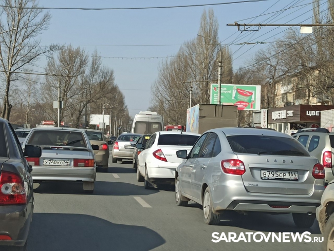 Около часа назад в Ленинском районе Саратова столкнулись три авто. На дорогах образовались пробки.