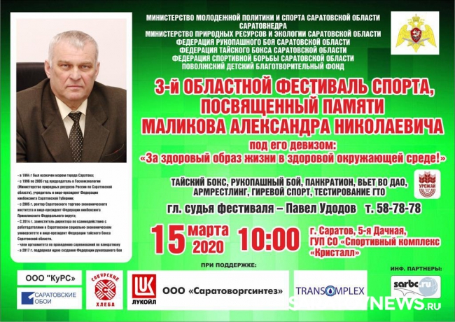 Министерство молодёжной политики и спорта Саратовской области, «Саратовнедра», министерство природных ресурсов и экологии Саратовской области, федерация рукопашного боя Саратовской области, федерация тайского бокса Саратовской области, федерация спортивной борьбы Саратовской области, Поволжский детский благотворительный фонд