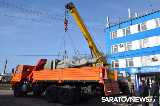 Вчера, 10 марта, памятник легендарной летчице Марине Расковой, ранее располагавшийся в летном городке Энгельса, перевезли в Саратов на реставрацию.